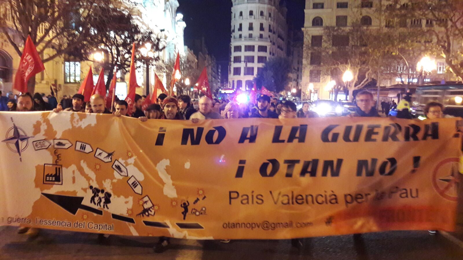 La concentración convocada por la Plataforma «No a la Otan , No a la Guerra, Pais Valenciá per la Pau» con asistencia de unas 200 personas de diversos colectivos sociales y organizaciones junto al Consulado Alemán , donde se leyó el manifiesto en respuesta a la conferencia de la OTAN que el mismo dia 18 se llevaba a cabo en Munich , permitió una pequeña marcha en manifestación hasta el consulado de EE.UU, visibilizandose en gran medida la protesta , al encontrarse ambos Consulados en dos zonas céntricas muy transitadas de Valencia.