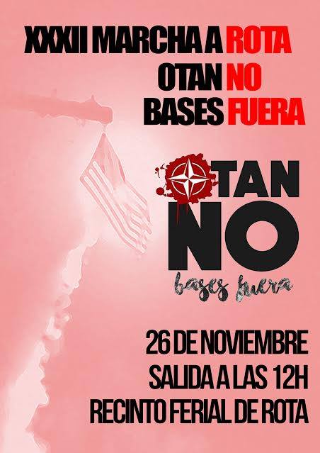 Convocatoria a la XXXII Marcha a la Base Naval de Rota para denunciar su presencia y utilización y exigir la retirada de la OTAN y el cierre de todas las bases e instalaciones de EEUU y la OTAN.